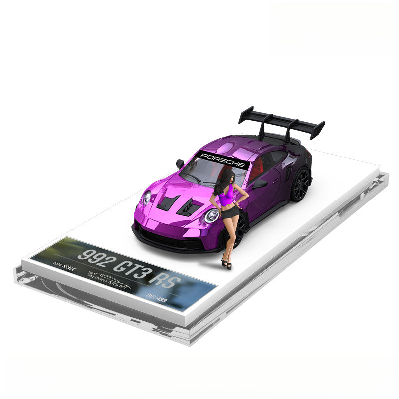 AM 1:64 Porsche 964 & 992 GT3 RS Electroplated Black-Purple Gradient Model