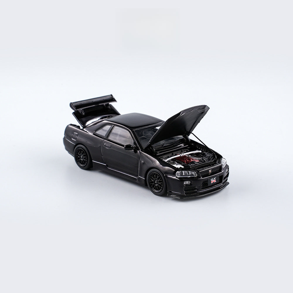 The AURORA MODEL 1:64 GT-R R34 is an exclusive diecast model crafted for the 2024 Auto Tuning Expo.This detailed collectible features a high-quality zinc alloy body with ABS engineering plastic, an opening front and rear hood, and a realistic design true to the iconic R34 spirit.Ideal for collectors and enthusiasts who appreciate rare show-limited models.