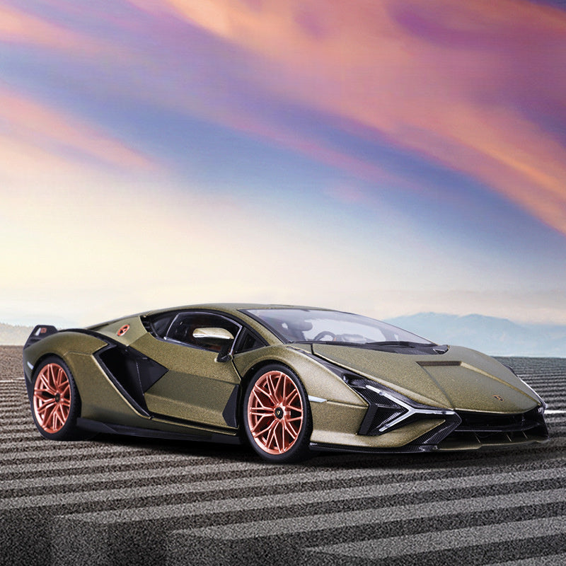 Add a piece of Lamborghini’s futuristic hypercar legacy to your collection with thisBburago1:18 scaleLamborghini Sian FKP 37.. die-cast model.Finished in stunning metallic green, this detailed replica captures the aggressive design and innovative spirit of Lamborghini’s first hybrid supercar.