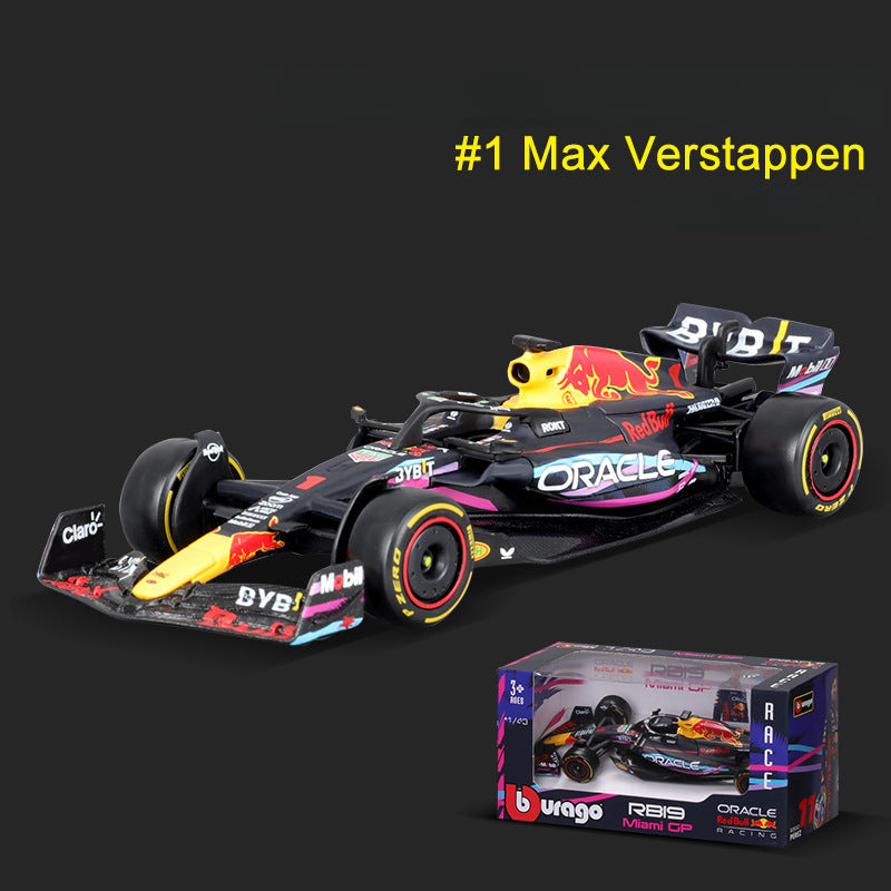 Celebrate the adrenaline of the 2023 Formula 1 season with this1:43 scale Red Bull RB19 Miami GP diecast model byBburago..Faithfully replicating the RB19 as raced at the Miami Grand Prix, this miniature captures the striking livery, aerodynamic shape, and championship pedigree that define Red Bull Racing’s latest F1 machine.
