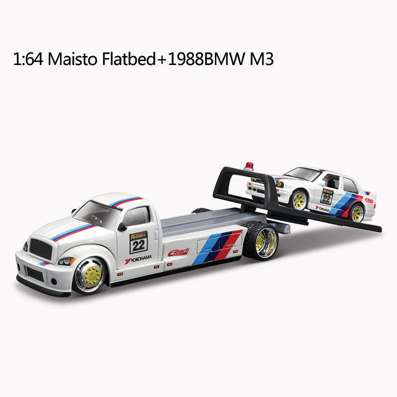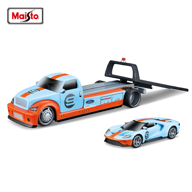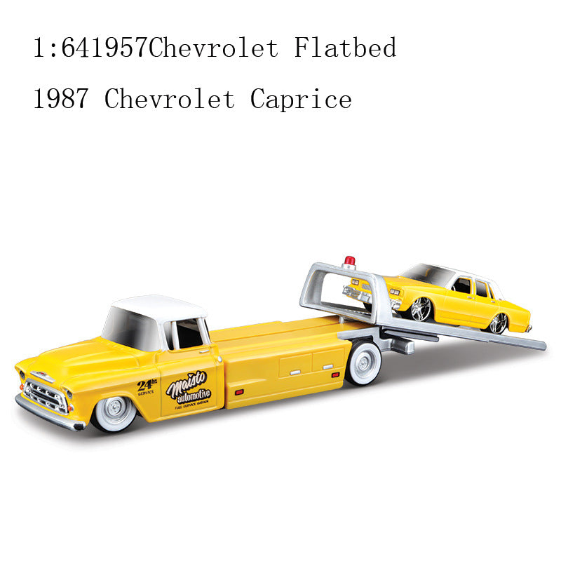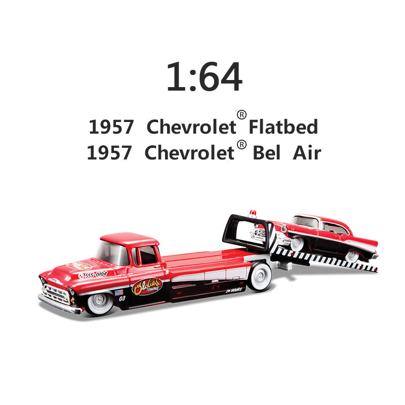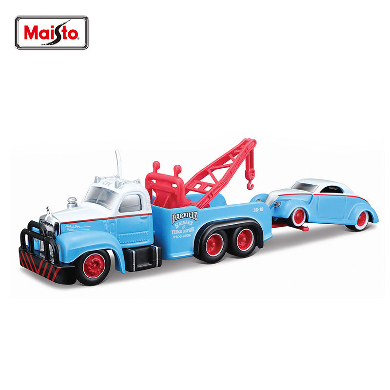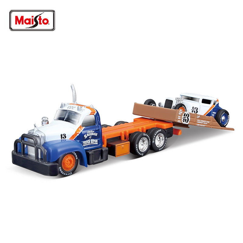 Add a classic collectible to your display with this Maisto premium diecast trailer set.Featuring a metal trailer and a matching small car, both crafted from diecast alloy and durable ABS plastic, this model is perfect for kids and collectors alike.Great for imaginative play or as a display piece for any diecast car collection.