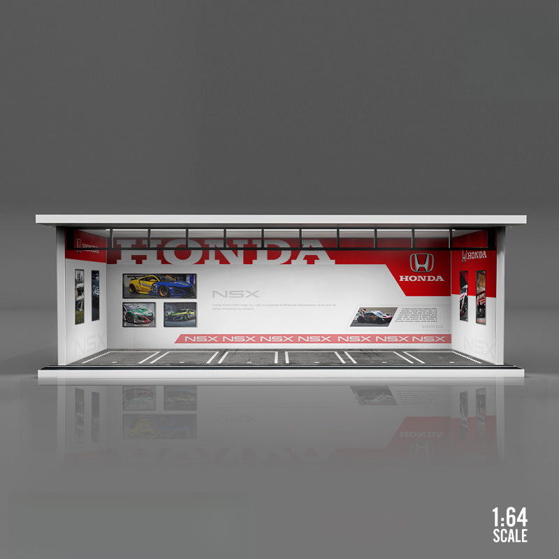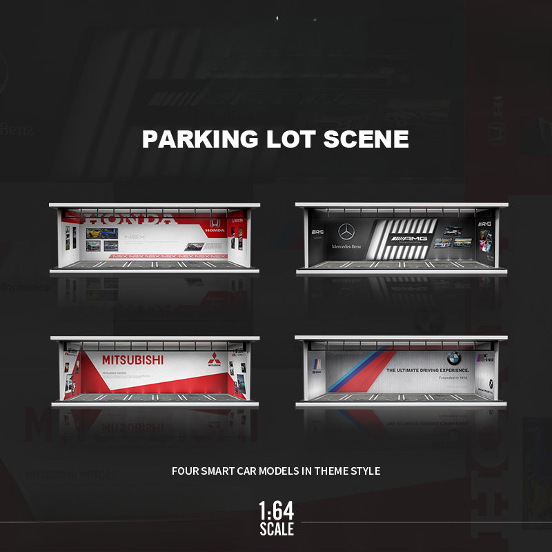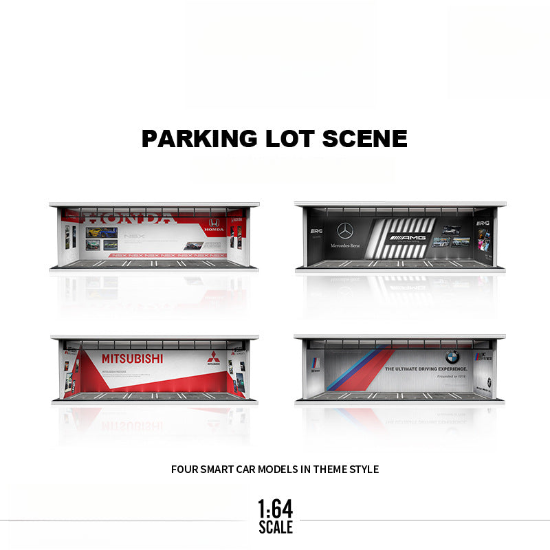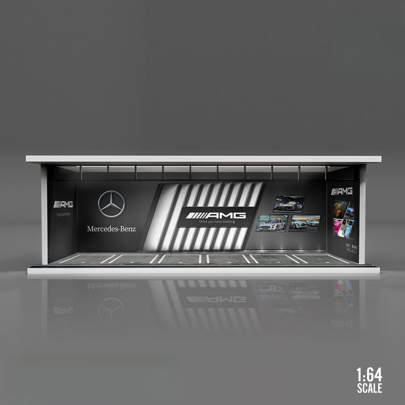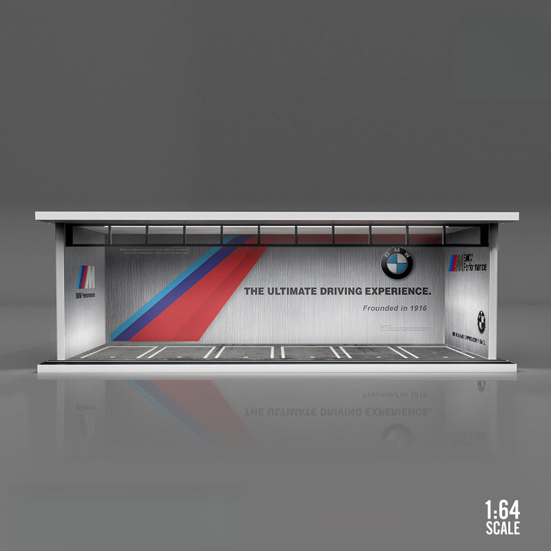 The MoreArt Original 1:64 Car Culture Theme Light-Up Scene Model is a unique display scene inspired by automotive culture. Featuring a detailed PVC base, ABS carved platform, and acrylic panels, this piece is perfect for showcasing die-cast car models or as a distinctive collectible display.