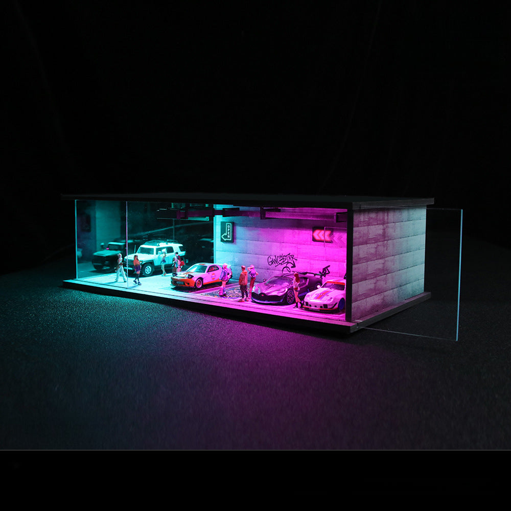 Bring a futuristic vibe to your collection with theMoreArt 1:64 Cyberpunk Series Light-Up Diorama.Crafted with aPVC base and ABS carved foundation, this assembly-style scene features built-in lighting to create a vivid cyberpunk atmosphere for your 1:64 scale diecast cars and figurines.