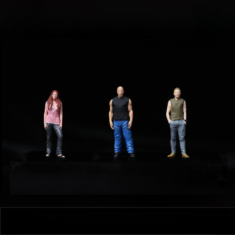 Each figure is handcrafted from premium resin, carefully hand-painted, and designed to perfectly match 1:64 diecast cars and scene models. Standing at about 2.7 cm tall, these mini figures add realistic character and cinematic detail to your display. Ideal for collectors and model enthusiasts who love combining cars and scenes.