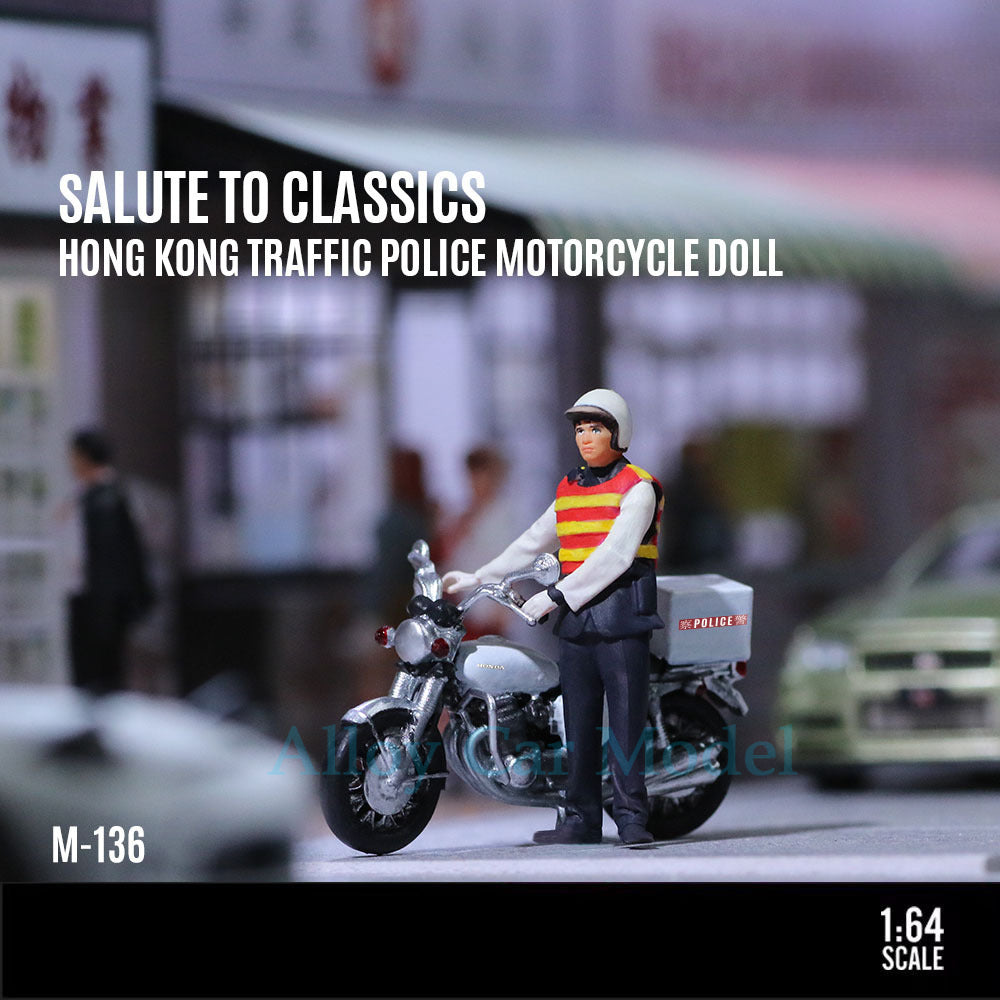 The MoreArt 1:64 Tribute to Classic Hong Kong Traffic Police Motorcycle Figure is a finely crafted, hand-painted resin collectible. This detailed figure pays homage to iconic Hong Kong traffic police style, perfect for pairing with die-cast car models or displaying alone.