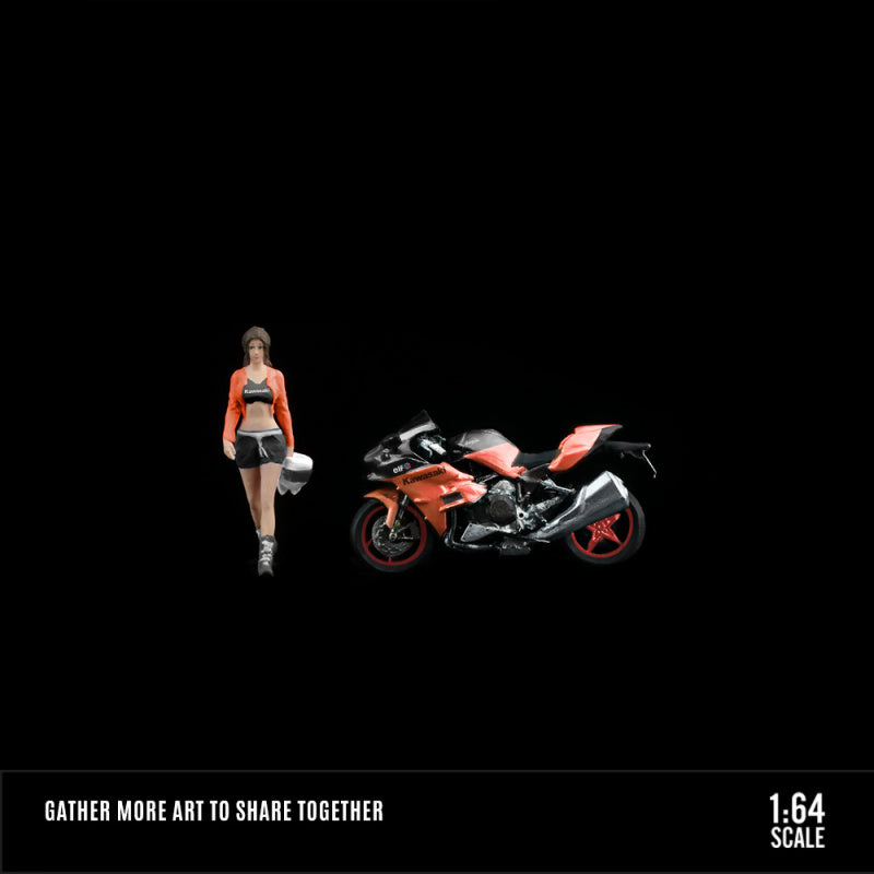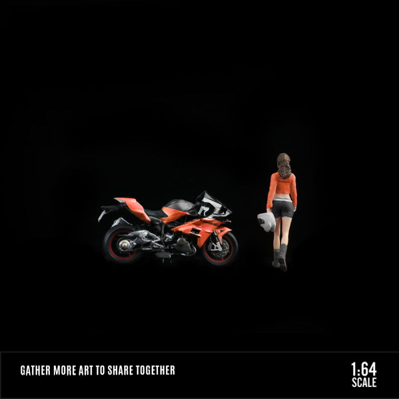 MoreArt 1:64 Kawasaki Motorcycle Girl Resin Figure Set | Diorama Accessory