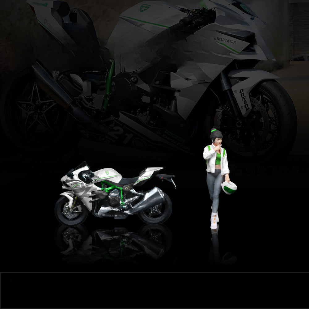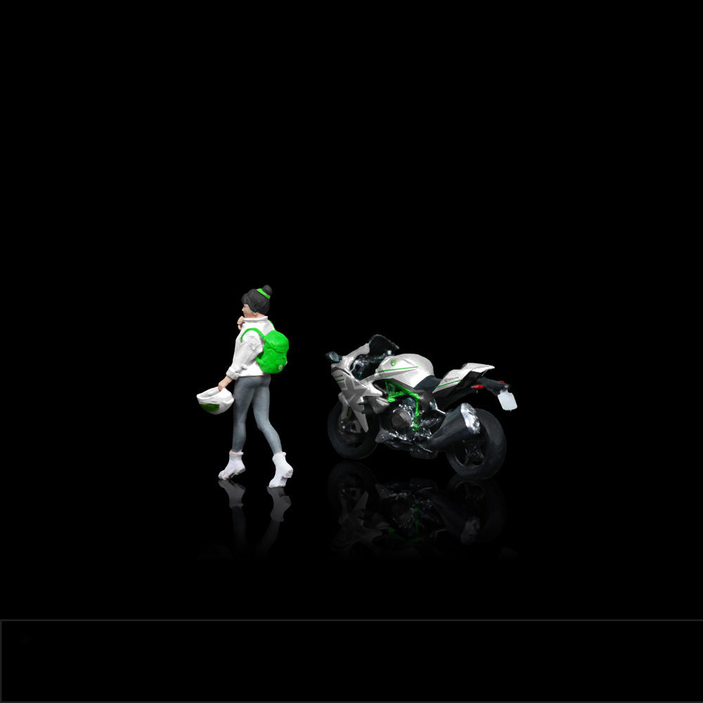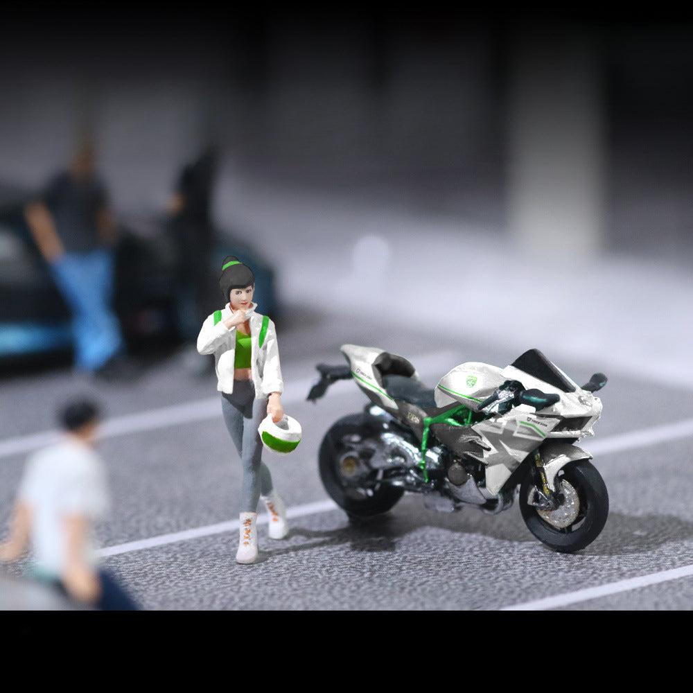 MoreArt 1:64 Kawasaki White Livery Girl with Motorcycle Resin Figurine Set