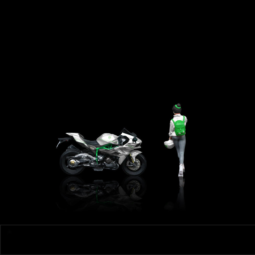 Enhance your miniature collection with theMoreArt 1:64 Kawasaki White Livery Girl with Motorcycle Resin Figurine Set. This set includes a stylish girl figurine (approx. 2.5 cm tall) and a detailed motorcycle (approx. 2.7 cm long), both crafted from high-quality resin and hand-painted for realistic detail. Perfectly scaled for 1:64 diecast cars and dioramas, it adds a dynamic and eye-catching element to your display.