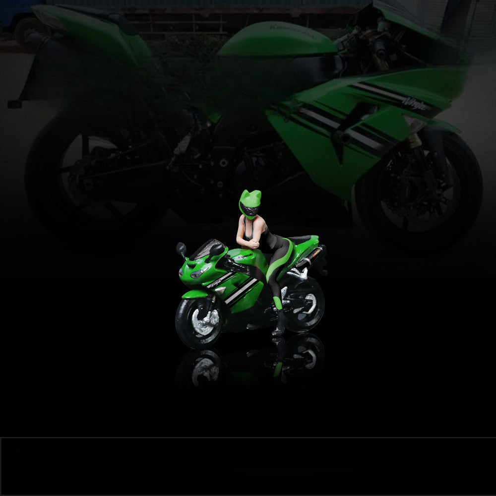 MoreArt 1:64 Kawasaki ZX-10R Green Motorcycle Girl Resin Figurine Set