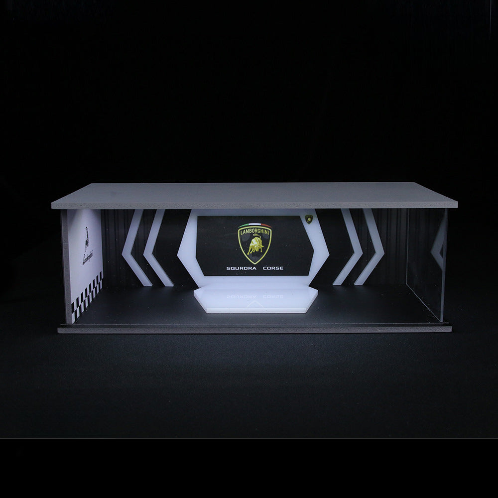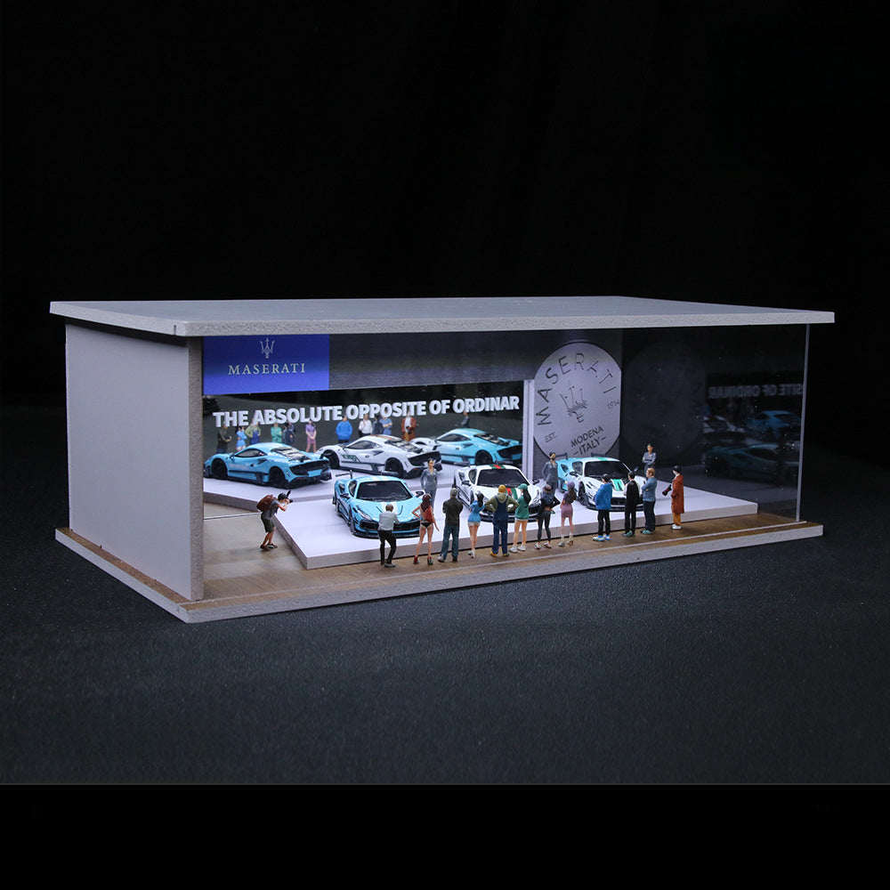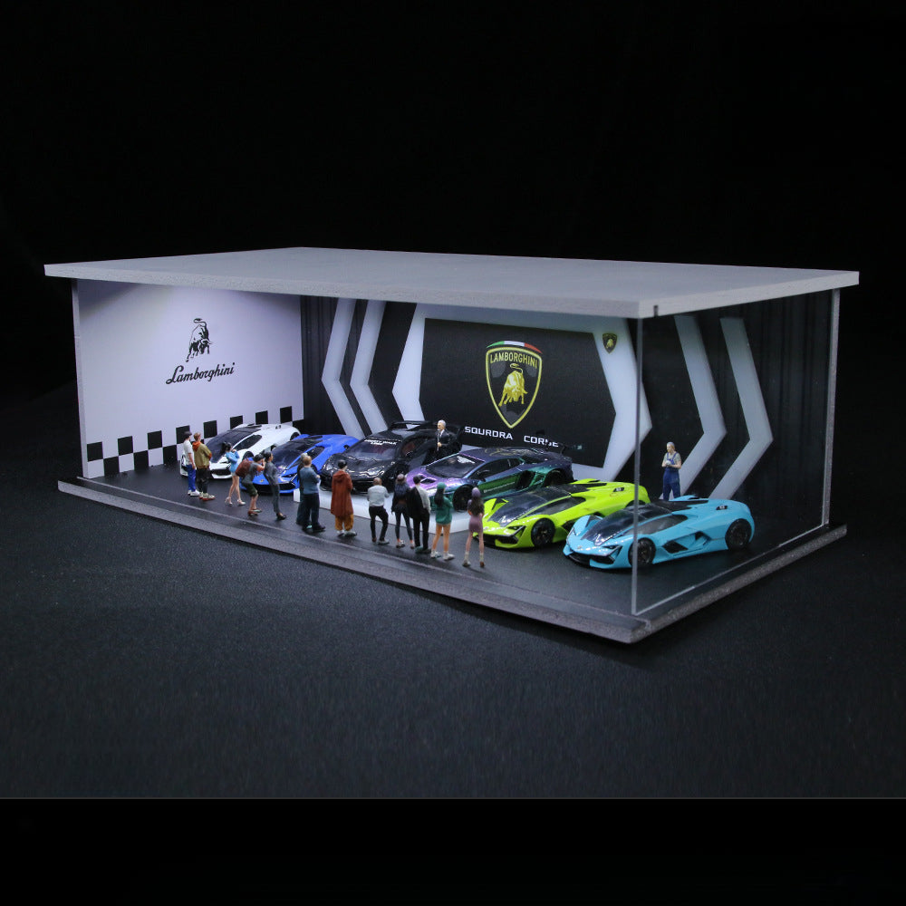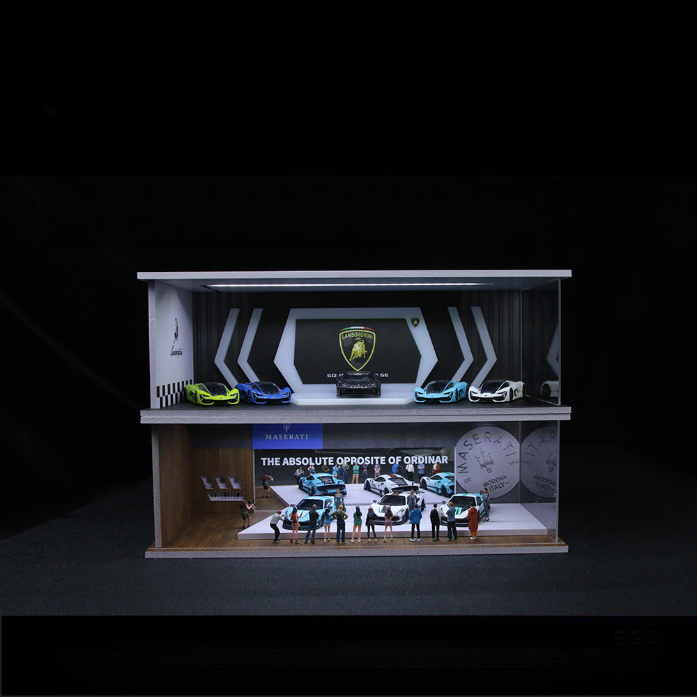 Bring the excitement of a luxury car showroom to your collection with theMoreArt 1:64 Lamborghini& Maserati Showroom Lighted Assembly Display.