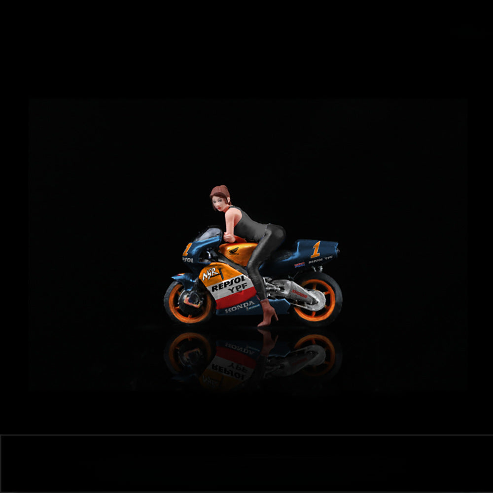 Crafted from high-quality resin, this hand-painted miniature set features arider figure (2.7 cm tall)and amotorcycle (about 2 cm long), perfectly scaled for 1:64 diorama scenes and diecast car displays.
