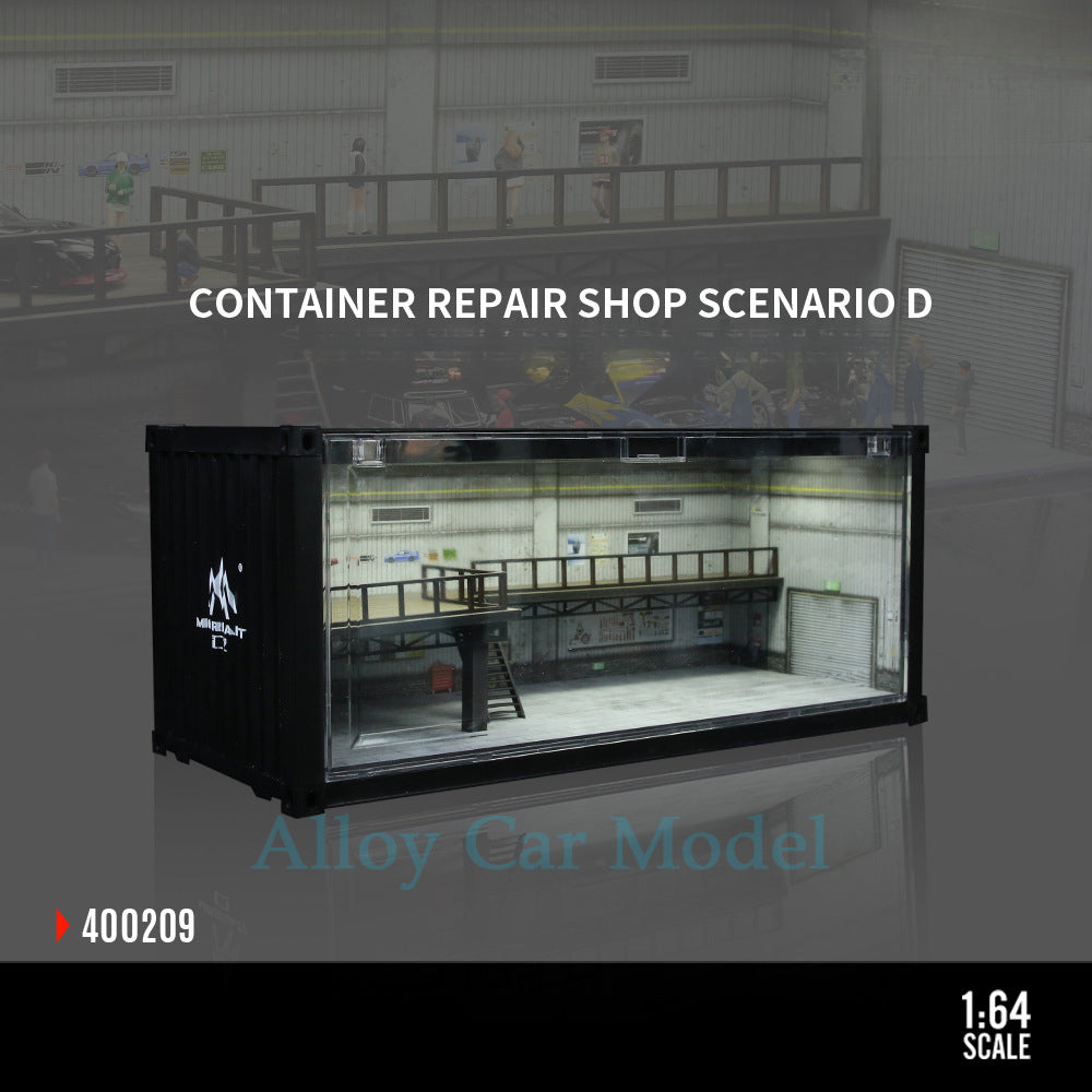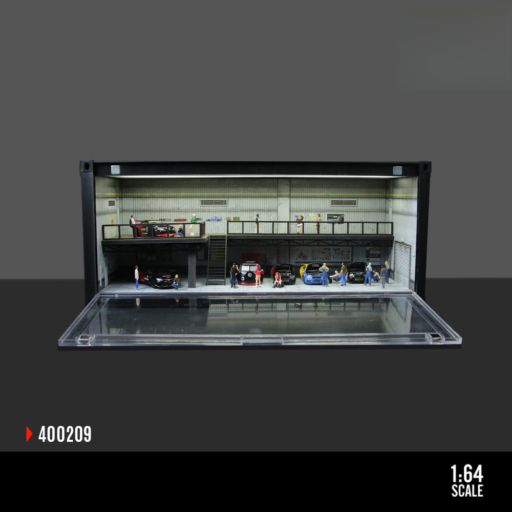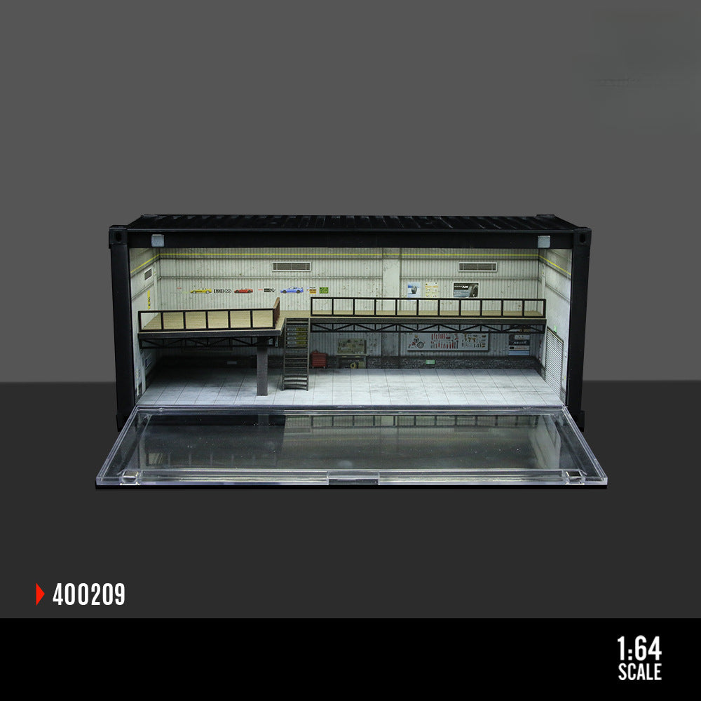 TheMoreArtContainer Repair Shop Scenario D is a highly detailed diorama designed to pair with 1:64 diecast car models.Made from durableABS, this realistic garage scene adds depth and atmosphere to any car display collection.Perfect as a unique gift or for collectors who want to create a professional-scale miniature workshop.