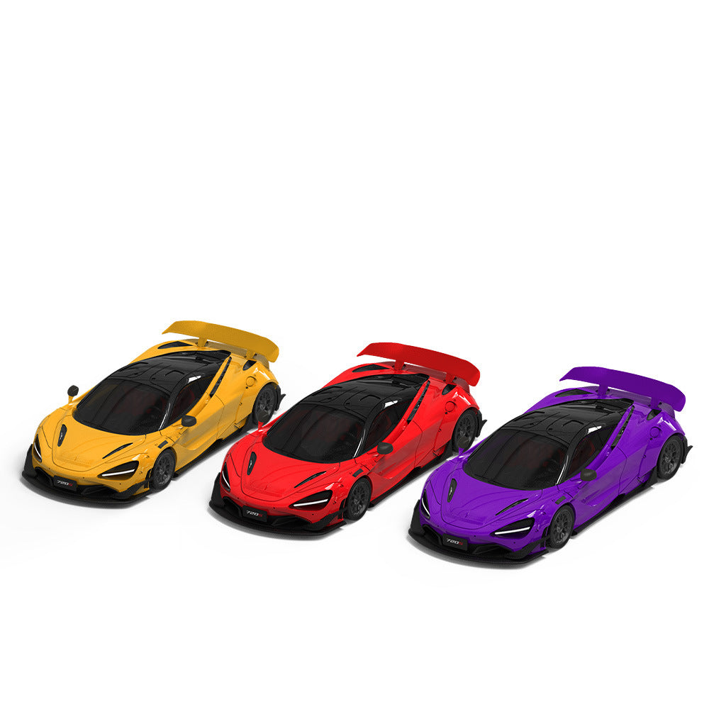 SUPCAR 1:64 McLaren 720S Diecast Model (Yellow, Red & Purple)