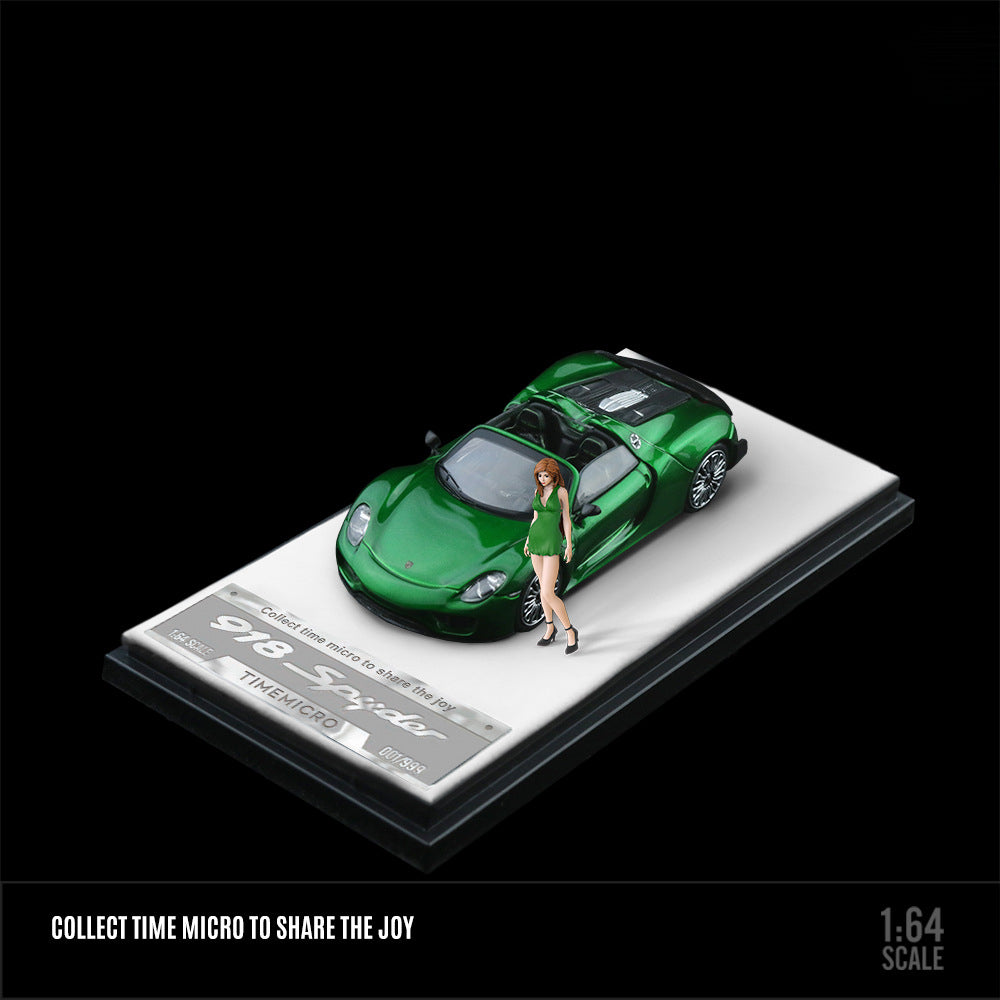 TIMEMICRO 1:64 Porsche 918 Model | Electro Blue & Metallic Green Die-Cast