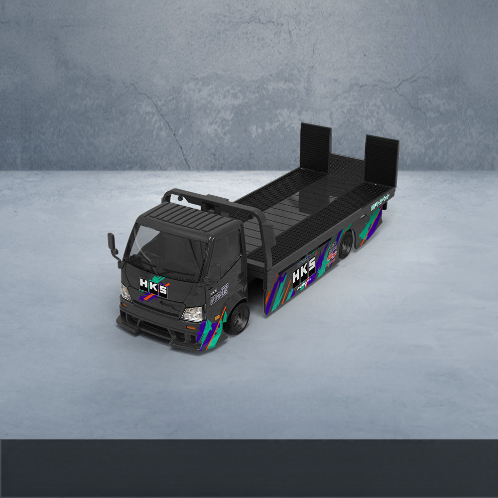 TheTM 1:64 HKS Livery Diecast Model Car Seriesbrings Japanese tuning culture to life with incredible detail.This set includes the iconicNissan KPGC110.and anH300 Flatbed Transport Trailer, both finished in the legendary HKS racing livery.
